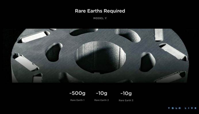 2023 Mart’ındaki Yatırımcı Günü’nde Elon Musk, karbon silisyum kullanımını %75 azaltmayı ve nadir toprak sabit mıknatısları tamamen terk ederek nadir toprak içermeyen bir sabit mıknatıslı motor üretmeyi yüksek sesle duyurdu.