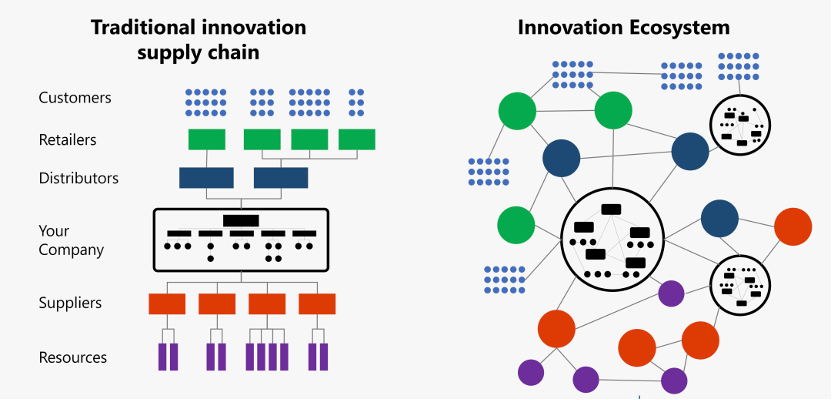 Bu fizik yasası, yenilik ekosistemine de uygulanır. Tüm üst düzey yenilik ağları, istisnasız olarak açıktır; yoğun bir uluslararası liman gibi, sürekli olarak küresel ile kaynak, yetenek, sermaye ve fikir alışverişi yapar.