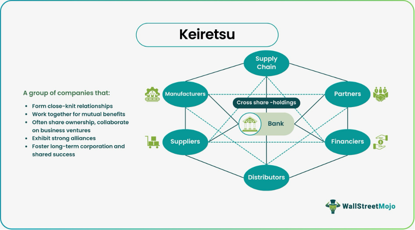 Japonya’nın “Keiretsu” (seri) işletme grupları, modern iş ortamında formu evrilmiş olsa da, iç üyeler arasındaki uzun vadeli işbirliğine dayalı derin güven, tedarik zinciri koordinasyonunda ve piyasa risklerine ortak dirençte hala önemli rol oynamaktadır.