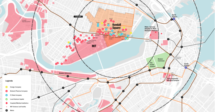 Boston bölgesindeki Kendall Square mükemmel bir örnektir. Massachusetts Teknoloji Enstitüsü (MIT) ve Harvard Üniversitesi merkezli olarak, burada sadece Pfizer, Novartis, Merck gibi biyoteknoloji ve ilaç devleri toplanmış, aynı zamanda Google, Amazon, Microsoft gibi teknoloji şirketleri Ar-Ge merkezleri kurmuş, ayrıca küresel en iyi risk sermayesi kurumları etrafını sarmış.